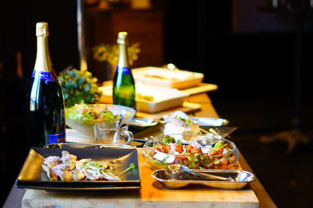 各テーブルにお料理をセッティングさせていただく、